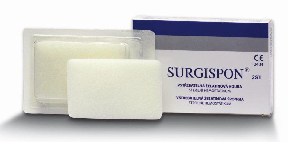 Surgispon нетоксична, аналергенна, неімуногенна, апірогенна і, в цілому, біосумісна гемостатична губка. Surgispon - хірургічна гемостатична губка, виготовлена з високоочищеного першого класу екстракт желатину для використання в різних хірургічних процедурах, в яких використовувати традиційні гемостатичні методи важко або непрактично, а використання інших матеріалів, що не розсмоктуються, небажано. Surgispon поглинає води / крові приблизно в 40-50 разів, більше його ваги і легко прикріплюється до місця кровотечі. Рівномірна пористість Surgispon™ гарантує сприятливий гемостатичний ефект.